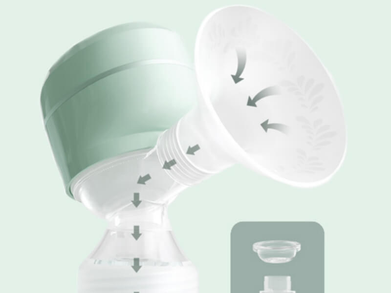 Älykkään teknologiansa ansiosta maidon valumisriskiä ei ole pumppauksen aikana.